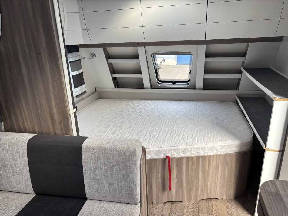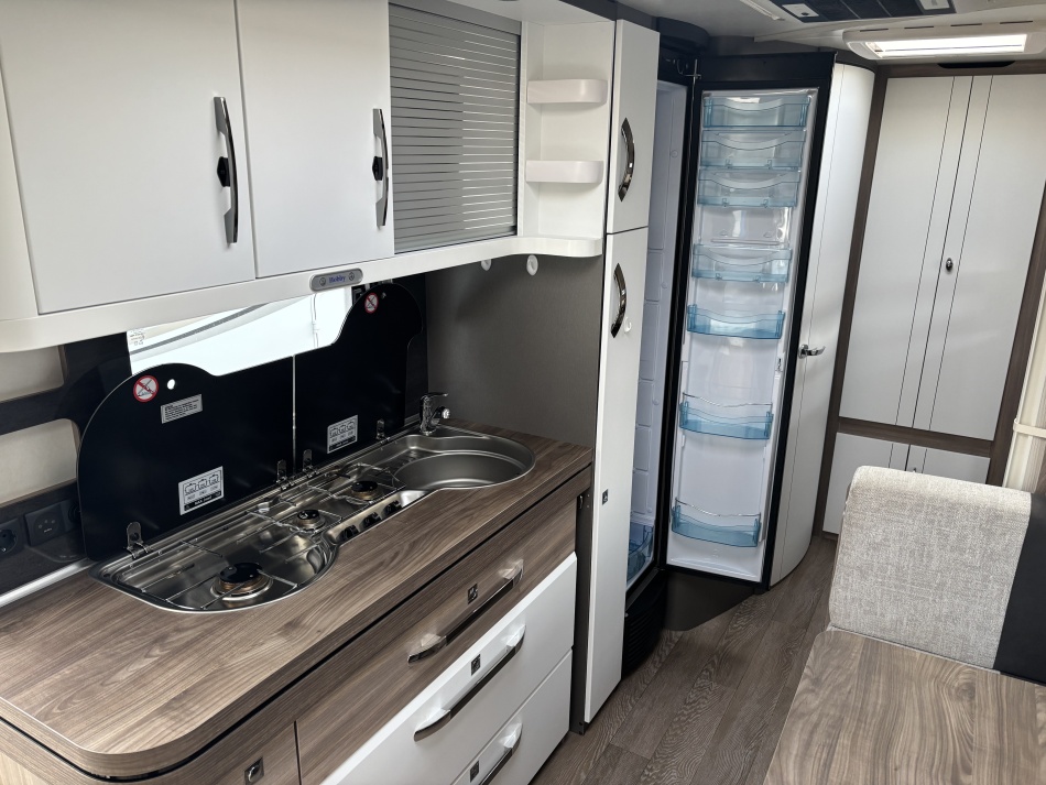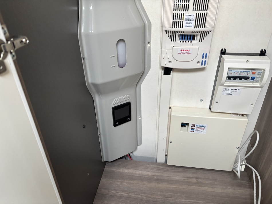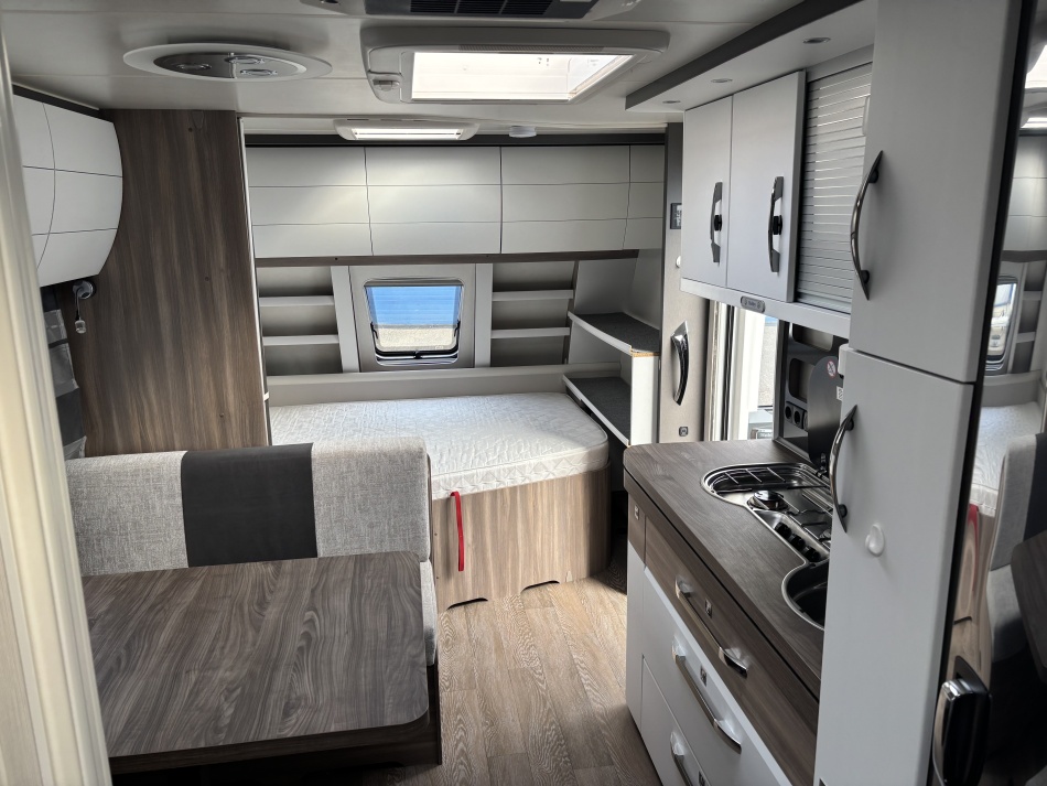 • Système de freinage Knott ETS Plus • Store Thule 6,3/4 m • Moquette grise amovible pour toute la caravane • Micro-ondes intégré dans la cuisine • Hotte aspirante • Système Duo Control pour bouteilles de gaz, avec tuyaux de sécurité • Truma Mover SX • Prise gaz extérieur et prise eau ajoutées • Batterie externe pour rendre la caravane autonome • Climatisation de toit Dometic • Système de chauffage à eau chaude puissant de marque Alde .