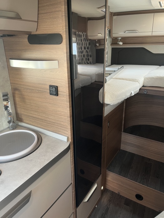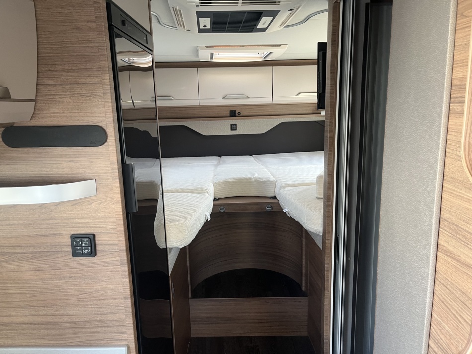 EQUIPEMENTS DE SERIE : PORTE 2VELOS - PARABOLE SATELITE AUTOMATIQUE - 2 TV ECRAN PLAT - CLIMATISATION CELLULE DOMETIC - GRAND FRIGO - LIT DE PAVILLON - BATTERIE LITHIUM 100 A - SUSPENSIONS PNEUMATIQUES