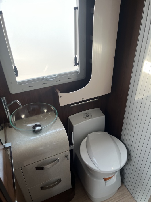 EQUIPEMENTS DE SERIE : Option : Suspension pneumatique Alarme sur toutes les portes et la soute Télévision Porte vélos Caméra arrière Plaque de cuisson, quatre feux Hotte Frigo plus congélateur Store extérieur . Poste radio USB Bluetooth
